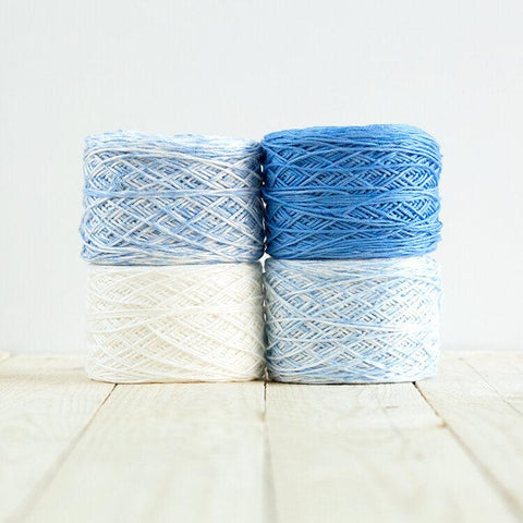 Dive into the Baby Bloom Gradient Kit, where colors blend seamlessly in a dance of light and shadow, enhancing your creation with a depth that is as visually stunning as it is heartwarming. The kit's yarn, part of our cherished Baby Bloom line, is specially designed to transition gracefully from a rich tone to gentle white, crafting a visual and tactile experience unlike any other.