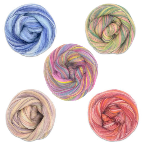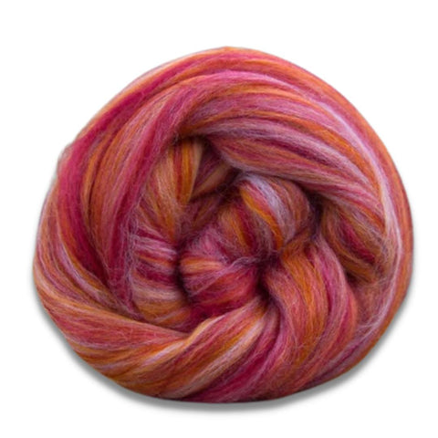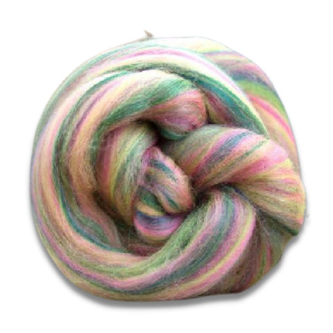 It's a spinner's delight! The long staple length aids in spinning thinner yarns, while the high wool content makes it superb for both wet and needle felting. Dive into the mesmerizing twists and turns of color variations and let your creativity soar with Bambino.