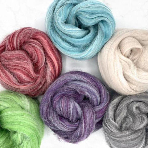 This breathable and cuddly soft blend features six fresh colorways that combine naturally white baby alpaca (33%) with dyed 23-micron merino (67%) to bring you ready-to-spin, powdery, and picturesque blends. Each Variety Pack contain 150 grams of fiber, 25 grams of each colorway.
