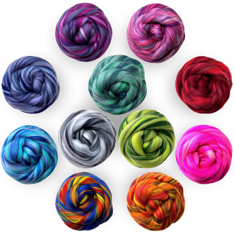 • Zero Guesswork Blends: 25 g of each color (11 shades, 275 g / 9.7 oz total) means plenty of fiber for sweater-quantity spinning, weaving accent stripes, or felting multicolor landscapes.