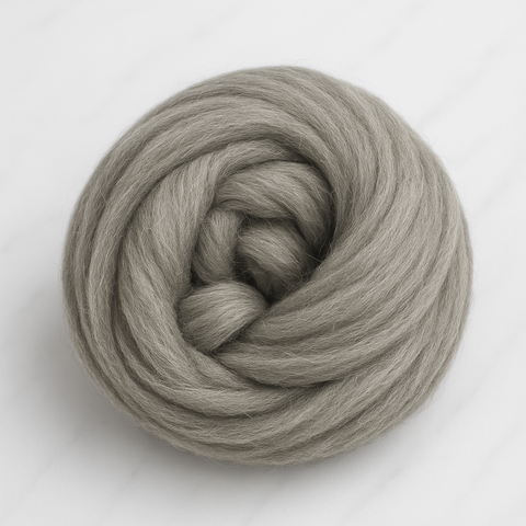 The soft gray tone of this wool is completely undyed—a rare, natural color that adds visual richness to finished yarns and felted art. Use it on its own for subtle neutral projects or blend it with white, black, or dyed fibers to create sophisticated gradients and heathered effects.