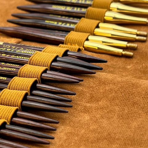 Our Rosewood Circular Interchangeables have a bunch of features that make them even better than fixed circulars. The tips will never come unexpectedly loose, thanks to the secure brass fittings and the integrated swivel lets the cable can turn 360 degrees which means it won't get twisted while knitting.