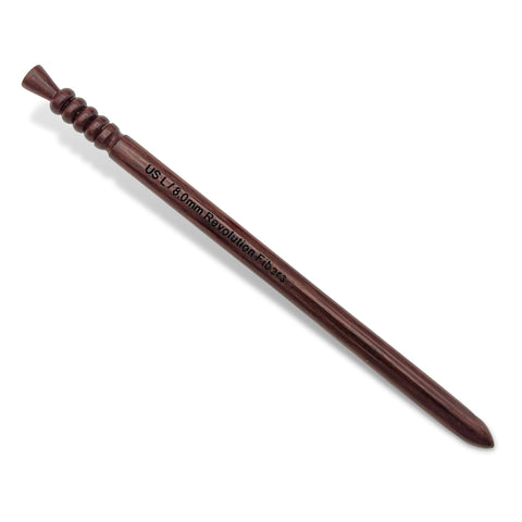 Revolution Fibers Rosewood Crochet Hooks are each individually handcrafted. This crochet hook is a replacement crochet hook for the Revolution Fibers Premium Crochet Hook Set.